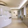 Purezza delle linee e trasparenza dei materiali sono le caratteristiche dello showroom, che risulta particolarmente luminosa grazie sia all’impiego di cristallo per tavoli e ripiani, sia alla presenza di ampie vetrate, fonte di luce naturale per l’area espositiva. All’interno dello showroom, dal design minimal ed essenziale, pareti bianche laccate si alternano a pannelli in acciaio: l’occhiale è il protagonista assoluto in teche e nicchie trasparenti, illuminate da faretti orientabili che creano armoniosi giochi di luce.