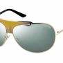Un design future-inspired infonde nuova vita alla mascherina da sole in metallo, dalle proporzioni ampie, con un dettaglio a contrasto sul frontale e piccole borchie piramidali (VAL 5751/s). Le nuance assecondano il mood scenografico: oro chiaro e rutenio, con lenti grigio scuro o specchiato.